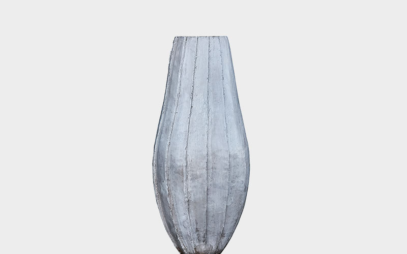 Auf der, ca.120m langen Stützmauer im Hintergrund der Stahlstele sollte eine Reihung von Großgefäßen entstehen. Basierend auf einer Bechergrundform designten Fritsch, Heger und Hinder gemeinsam eine Anzahl von Gefäßtypen im Modellmaßstab 1:10 und luden anschließend die Kolleginnen und Kollegen ein, sich mit einem dieser Gefäßmodelle auseinanderzusetzen und diesem die jeweils werkstattspezifische Gestaltung zu verleihen.